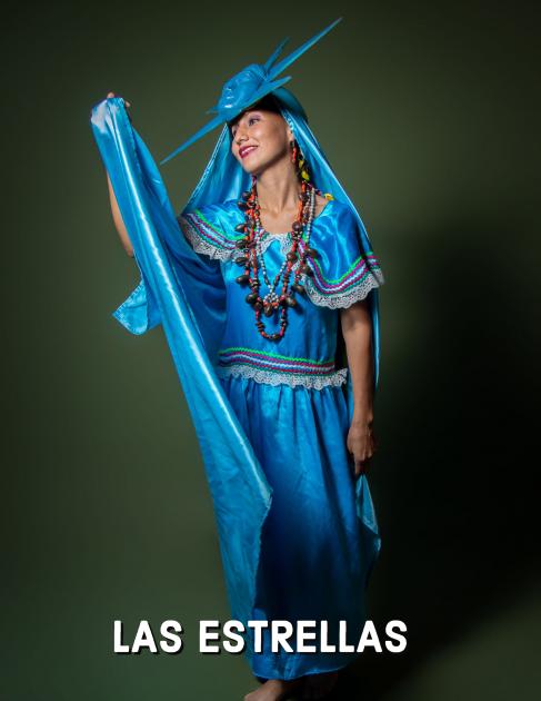 LA DANZA DE LAS ESTRELLAS SE CARACTERIZA CON TIPOY CELESTE Y TRENZAS QUE CUELGAN EN LAS ESPALDAS DE LAS BAILARINAS. SU CARETA EXPONE RASGOS FEMENINOS, EL ROSTRO DE UNA MUJER BONITA Y SONRIENTE CON DIFERENTES PUNTAS QUE FORMAN LA SILUETA DE UNA ESTRELLA. LAS PARTICIPANTES SOSTIENEN EN LA MANO DERECHA UN PAÑUELO DEL MISMO COLOR DEL TIPOY Y SIEMPRE ACOMPAÑAN A LA DANZA DE LA LUNA Y EL SOL.